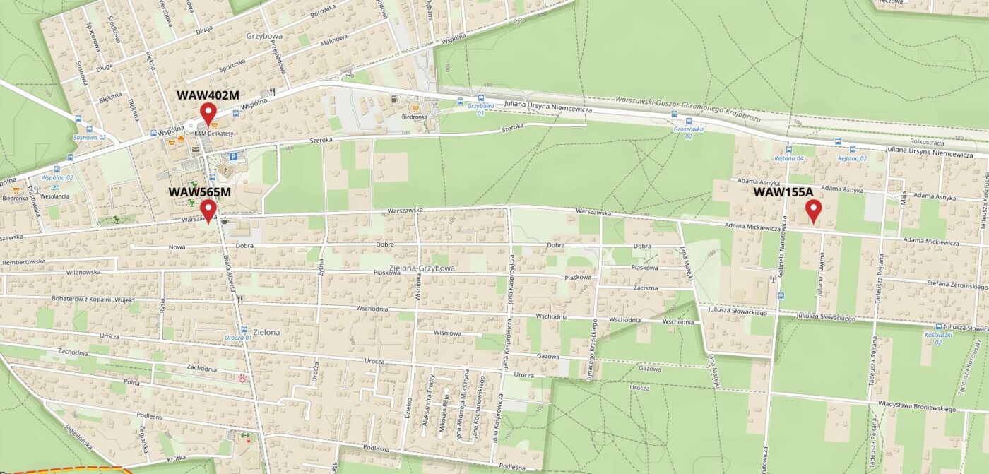 - WAW155A – Mickiewicza 13, Warszawa 05-075 (Na parkingu przy firmie Catzy)