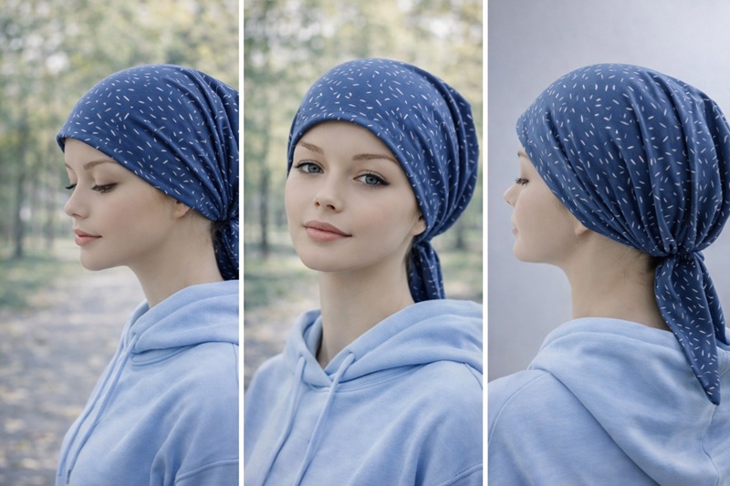 Chustka Maja mini to propozycja dla Pań które szukają lekkiej chustki na głowę na wiosnę, lato, czy po domu. Chustka na głowę Maja uszyta jest z delikatnej tkaniny bawełnianej, z tyłu ma mały ściągacz, a regulowana jest króciutkimi szarfami do zawiązania z tyłu głowy. Bawełna premium jest niezwykle miękka i delikatna. Wygodna prosta i krótka chustka po chemioterapii oraz po leczeniu, dla wszystkich kobiet jako ochrona przed wiatrem i słońcem.