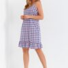 Koszula nocna damska niebiesko różowa w kratkę. Koszula nocna na cienkich ramiączkach jest długa do kolan. Koszula ma dekolt okrągły. Dół koszuli zdobi elegancka falbana. Koszula nocna uszyta jest z miękkiej 100% bawełny.