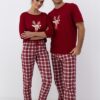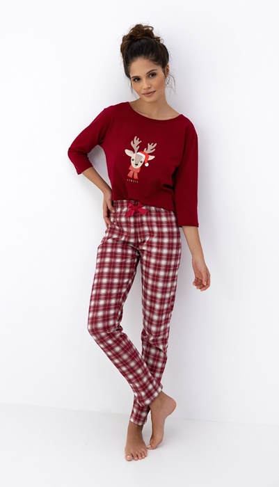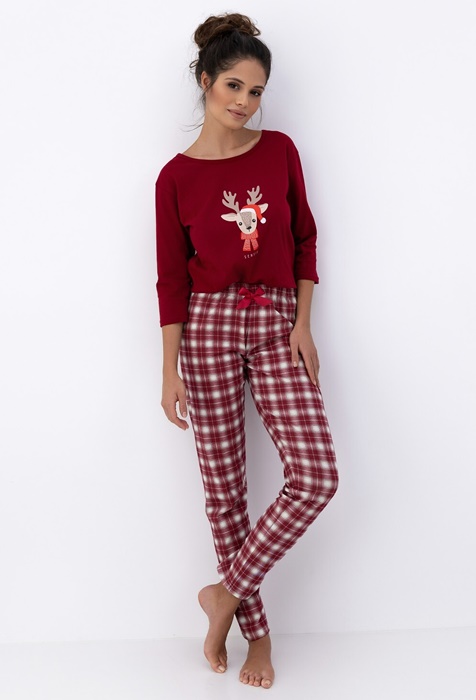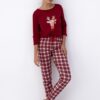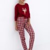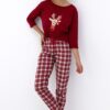 Bawełniana Piżama damska Sensis Mallory Świąteczny renifer i krata bordo:
