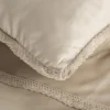 Elegancka gładka pościel z satyny bawełnianej beżowa wykończona delikatną koronką: