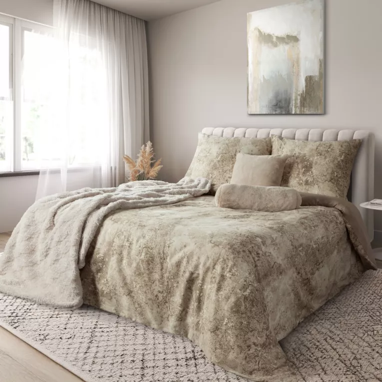 Beżowa marmurowa pościel bawełniana Satynowa miękka Polska: