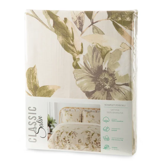 Satyna bawełniana to tkanina o niezwykłej miękkości i lekkim połysku. Pościel satynowa jest łatwa w prasowaniu, odporna na uszkodzenia, wytrzymała, lekka i przewiewna – w lecie zapewnia uczucie chłodu, a zimą zapewnia komfort cieplny. Komplet pościeli, wyposażony jest w zamki błyskawiczne kryte estetyczną zakładką, dzięki czemu użytkowanie jest bezpiecznie, a zmiana pościeli trwa tylko moment.