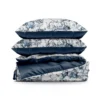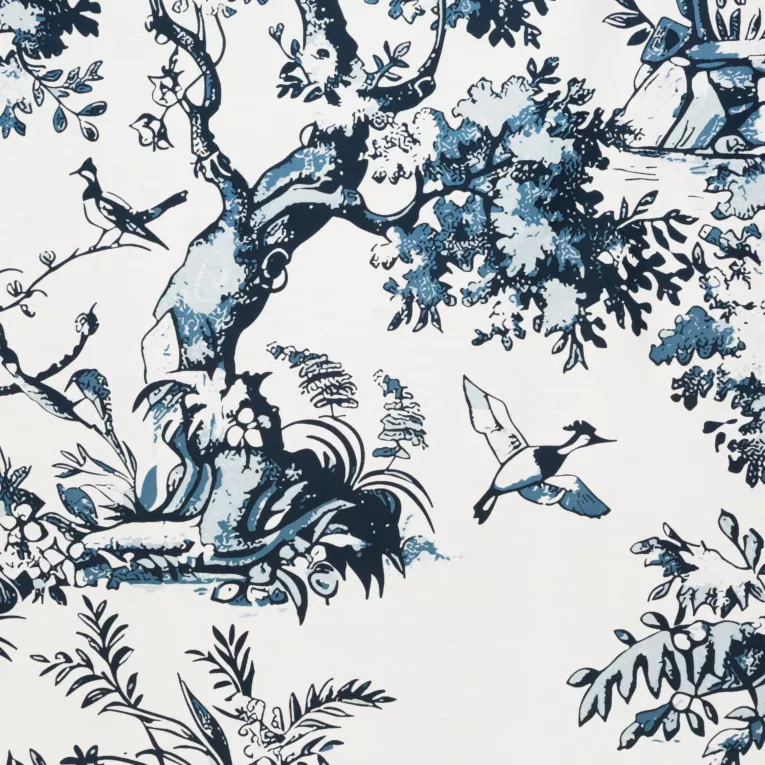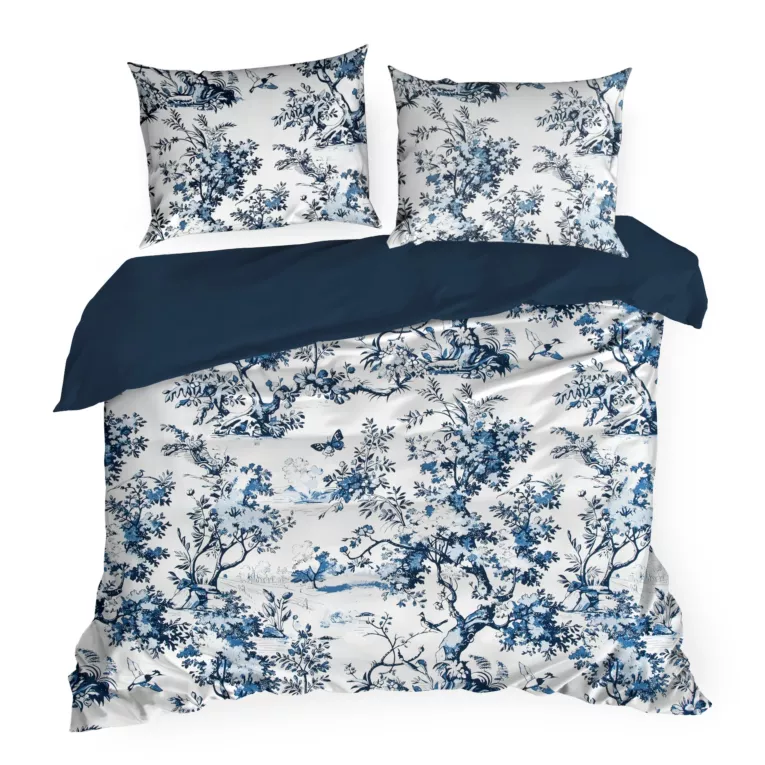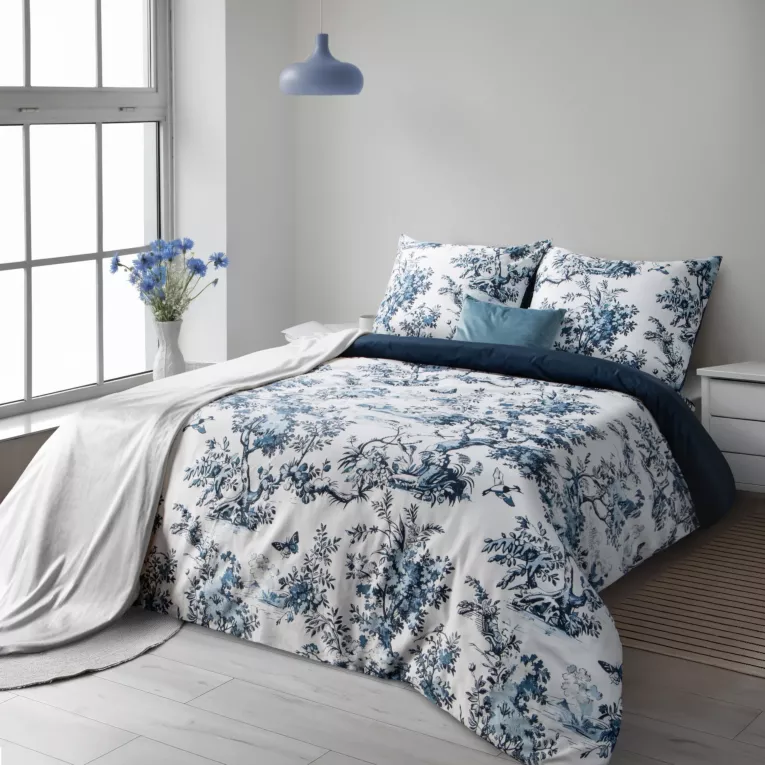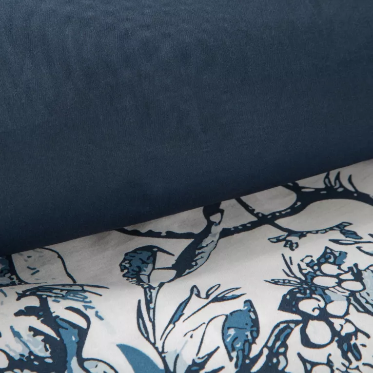 Biała pościel bawełniana Satynowa w granatowy elegancki wzór botaniczny: