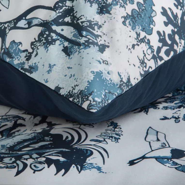 Komplet pościeli uszyty z wysokiej jakości satyny bawełnianej. Nowoczesna technika nadruku rotacyjnego, gwarantuje wyrazisty wzór, nasycone kolory i niezwykłe przejścia kolorystyczne, oraz sprawia, że nadruk nie traci swojej intensywności, nawet po wielu praniach. Proces sanforyzacji, daje gwarancję niezmienności rozmiaru, dzięki niemu pościel nie kurczy się nawet po wielu praniach.