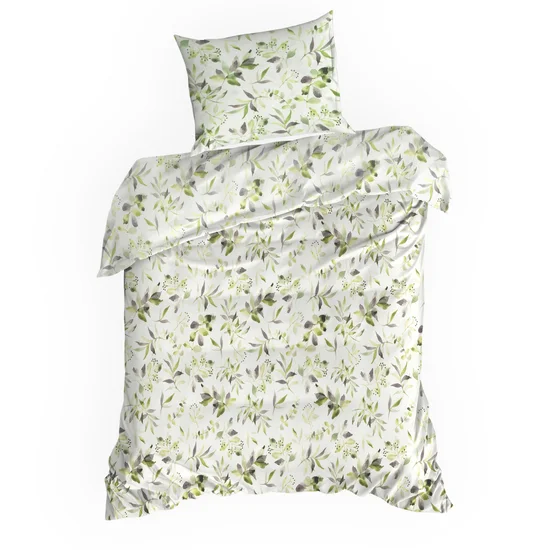 Pościel bawełniana biała w zielone listki: