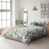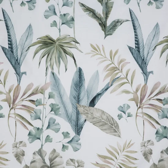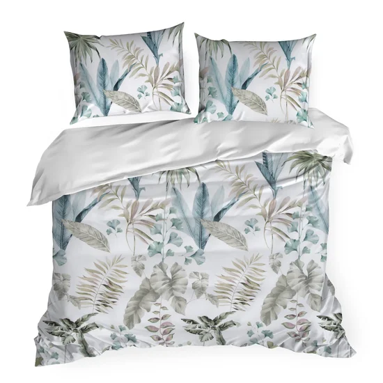 Satynowa bawełniana pościel biała w zielone liście: