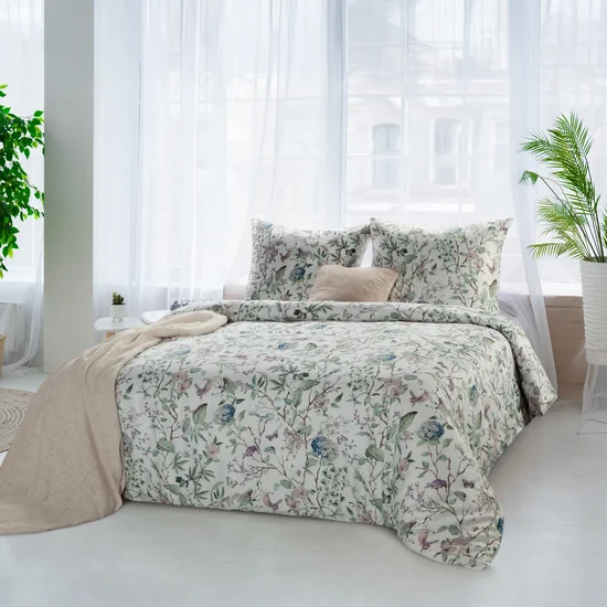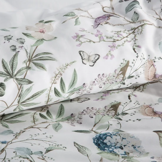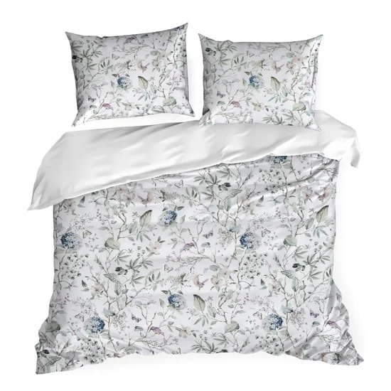 Satynowa bawełniana pościel biała w roślinny wzór: