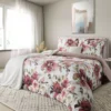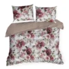 Biała pościel w bordowe kwiaty – Polska pościel z satyny bawełnianej:
