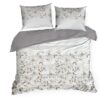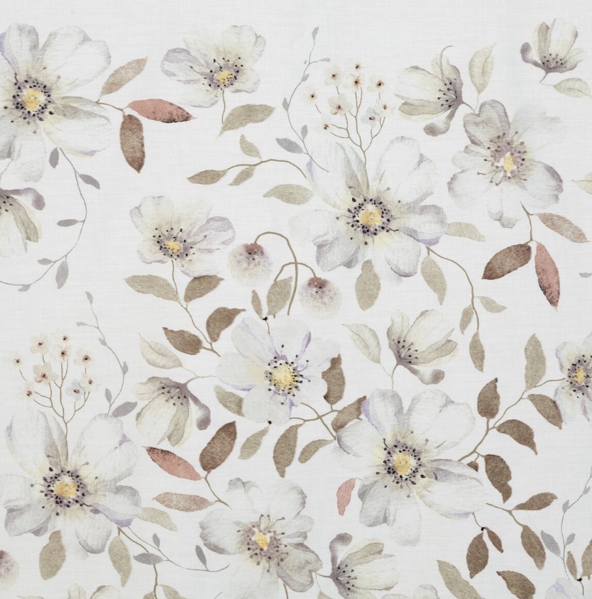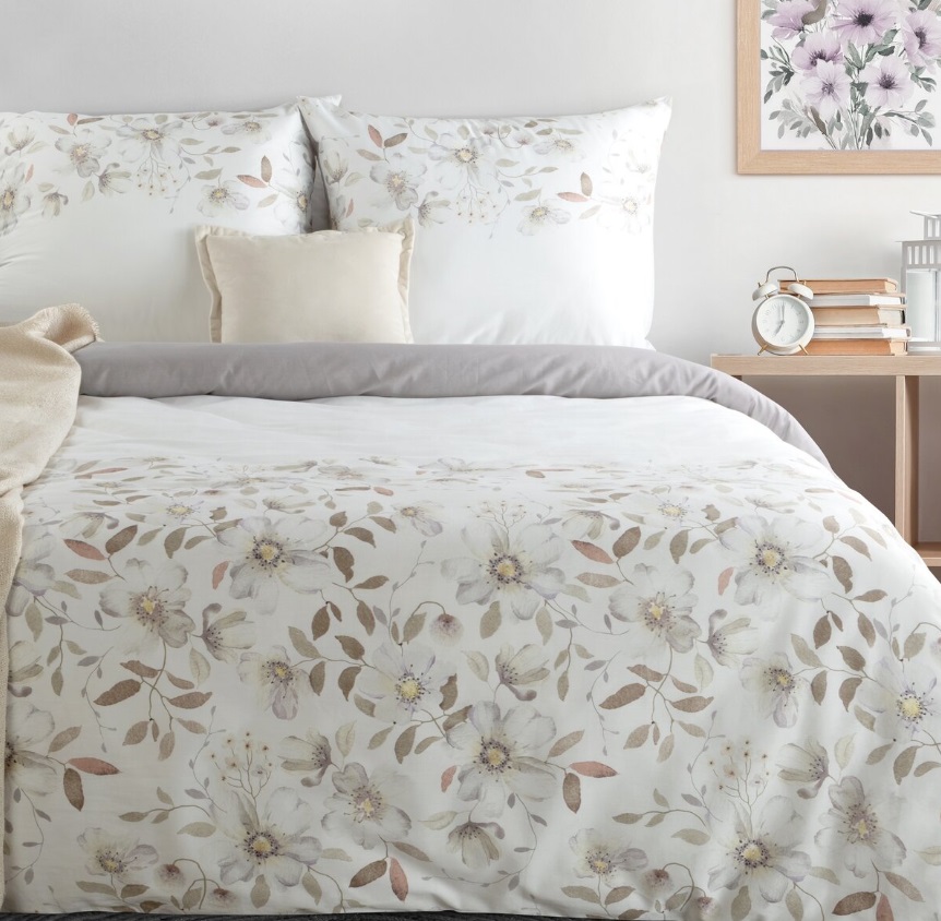 Biała pościel w kawowo bezowe kwiaty z satyny bawełnianej: