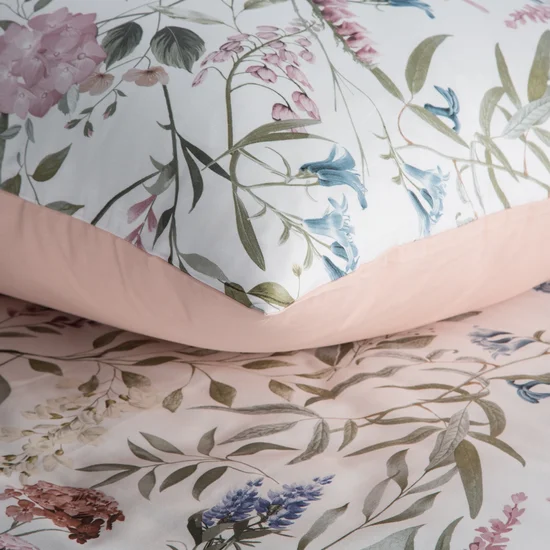 Satynowa bawełniana pościel biała w kolorową łąkę: