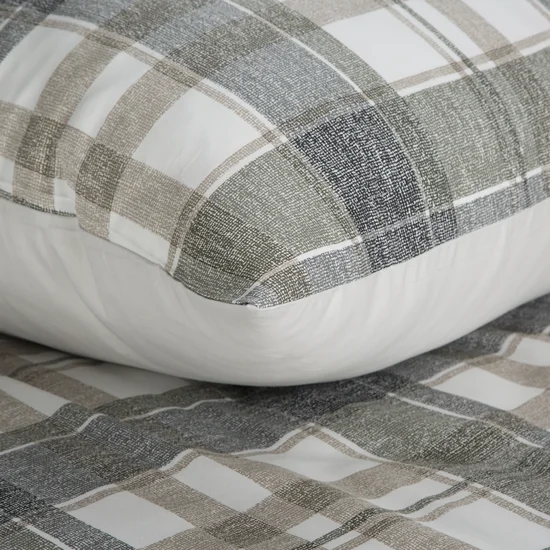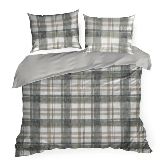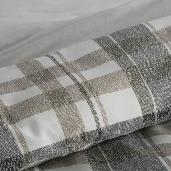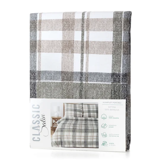 Satynowa bawełniana pościel biała szarą kratę: