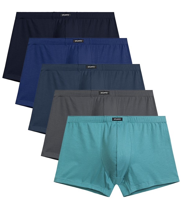 Bokserki męskie Atlantic – zestaw 5 sztuk bawełnianych bokserek męskich. W pasie nieuciskająca gumka z naszytym logo Atlantic. Bokserki męskie uszyte są z wysokiej jakości, miękkiej bawełny. Bokserki męskie pakowane są w pudełko po 5 sztuk.