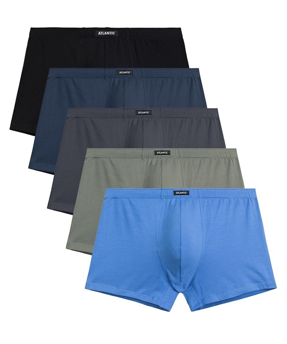 Bokserki męskie Atlantic – zestaw 5 sztuk bawełnianych bokserek męskich. W pasie nieuciskająca gumka z naszytym logo Atlantic. Bokserki męskie uszyte są z wysokiej jakości, miękkiej bawełny. Bokserki męskie pakowane są w pudełko po 5 sztuk.