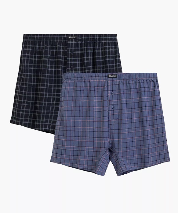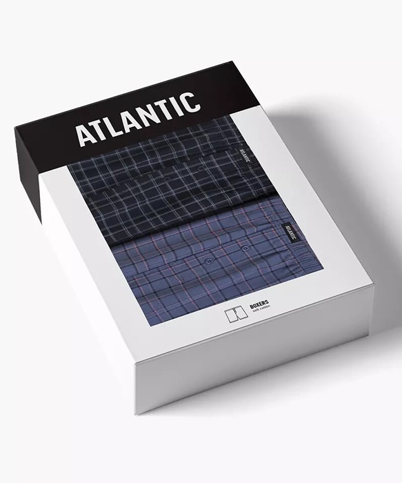 Bokserki męskie Atlantic – pakiet 2 sztuk 100% bawełnianych bokserek męskich o luźnym kroju. W pasie miękka gumka z naszytym logo Atlantic. Bokserki męskie uszyte są z wysokiej jakości, miękkiej 100% bawełny. Bokserki męskie pakowane są w pudełko po 2 sztuki. Rozporek bokserek zapinany jest na 2 guziki. Bokserki męskie o swobodnym, luźnym kroju są niezwykle wygodne.