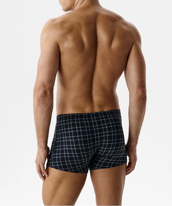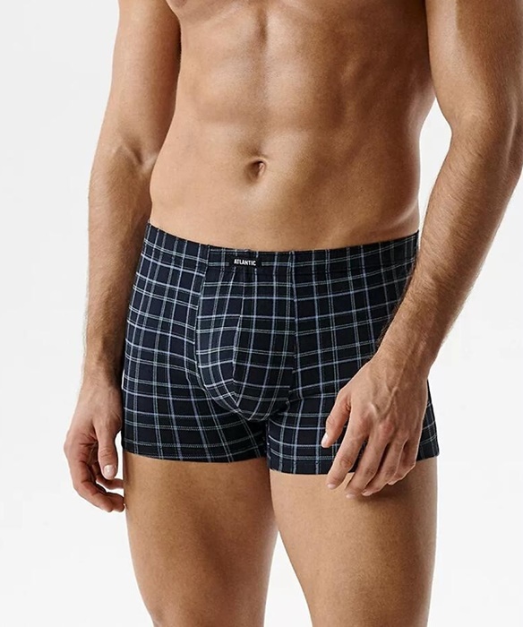 Bokserki męskie Atlantic – 3 sztuki bokserek w kolorze granat denim w kratkę.