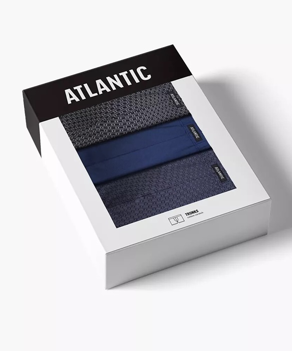 Bokserki męskie Atlantic – pakiet 3 sztuk bawełnianych bokserek męskich. W pasie miękka gumka z naszytym logo Atlantic. Bokserki męskie uszyte są z wysokiej jakości, miękkiej bawełny. Bokserki męskie pakowane są w pudełko po 3 sztuki. Bokserki męskie bawełniane są niezwykle wygodne.