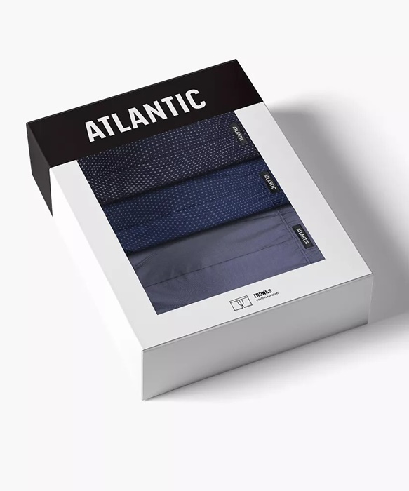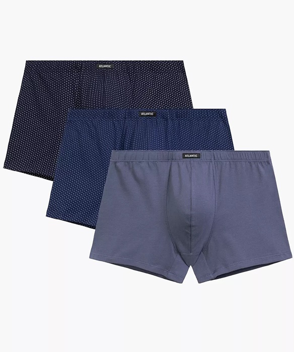 Bokserki męskie Atlantic – pakiet 3 sztuk bawełnianych bokserek męskich o dopasowanym kroju. W pasie miękka gumka z naszytym logo Atlantic. Bokserki męskie uszyte są z wysokiej jakości, miękkiej bawełny. Bokserki męskie pakowane są w pudełko po 3 sztuki. Bokserki męskie są niezwykle wygodne.