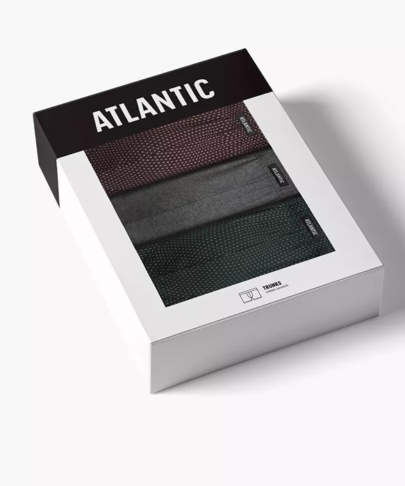 Bokserki męskie Atlantic – pakiet 3 sztuk bawełnianych bokserek męskich o dopasowanym kroju. W pasie miękka gumka z naszytym logo Atlantic. Bokserki męskie uszyte są z wysokiej jakości, miękkiej bawełny. Bokserki męskie pakowane są w pudełko po 3 sztuki. Bokserki męskie są niezwykle wygodne.