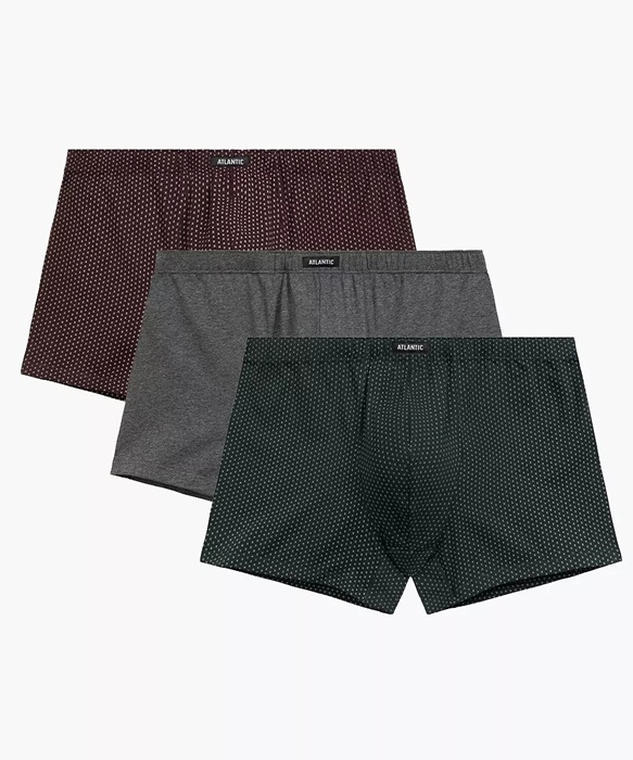 Bokserki Atlantic pakiet 3 sztuki Swobodny krój szary szmaragd wino: