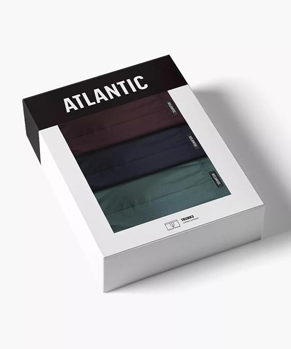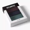 Bokserki męskie Atlantic – zestaw 3 sztuk bawełnianych bokserek męskich. W pasie nieuciskająca gumka z naszytym logo Atlantic. Bokserki męskie uszyte są z wysokiej jakości, miękkiej bawełny. Bokserki męskie pakowane są w pudełko po 3 sztuki.