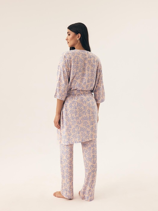 Szlafrok Henderson 42663 Nadar w kolorze morelowym w niebieskie koralowce.