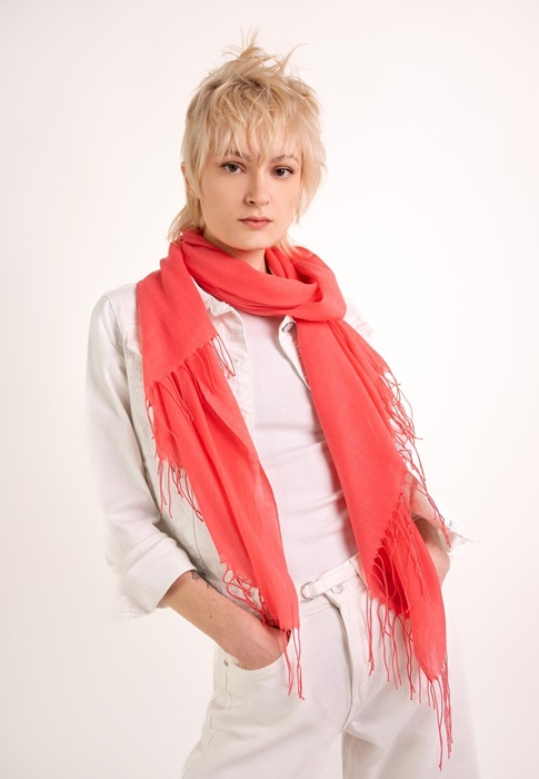 Cienki szal damski wykończony frędzlami. Szal długości 180cm na 70cm szerokości. Lekki, zwiewny szal damski.