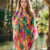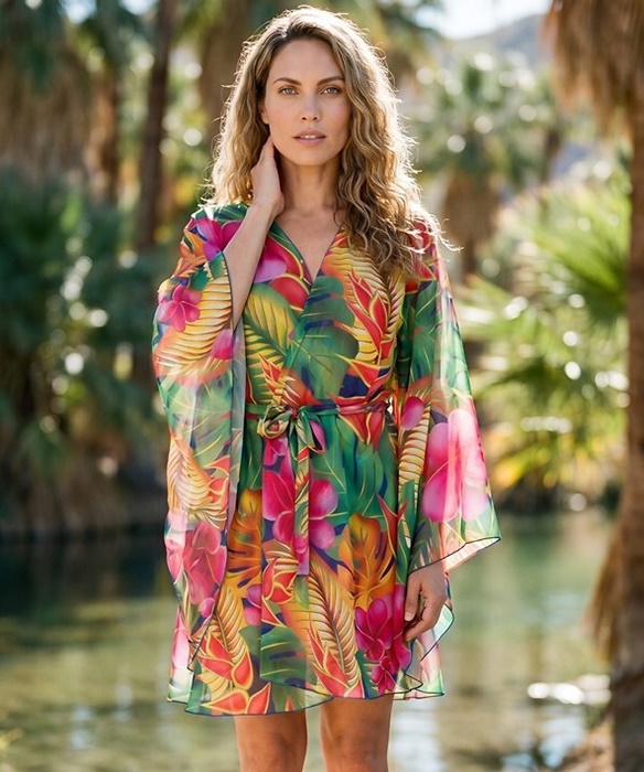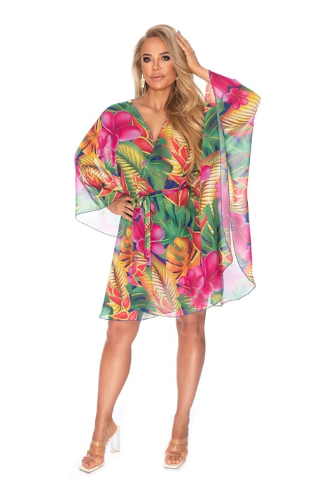 Pareo damskie, lekkie, zwiewne pareo, kolorowe. Idealne jako damska tunika plażowa. Świetny dodatek do kostiumu kąpielowego. Tunika wiązana w pasie. Ma długość do kolan i szerokie rękawy typu kimono.