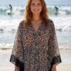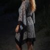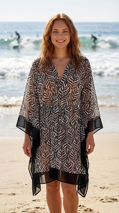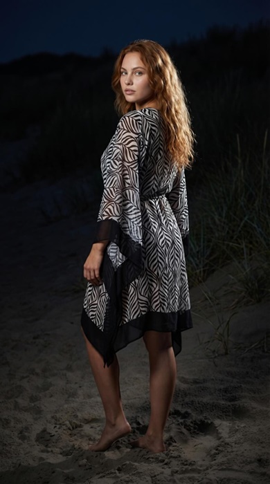 Pareo tunika plażowa narzutka Irall ecru czarny wzór 42: