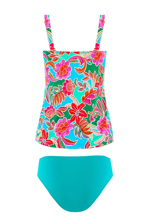 Dwuczęściowy kostium kąpielowy BEZ fiszbin tankini turkus kwiaty: