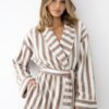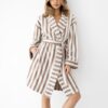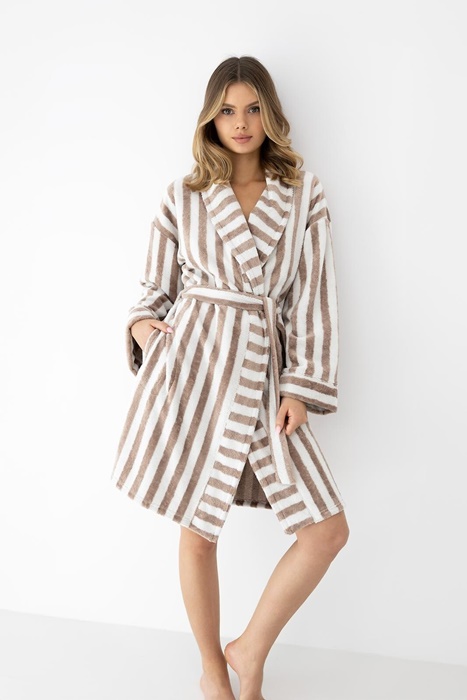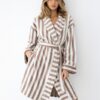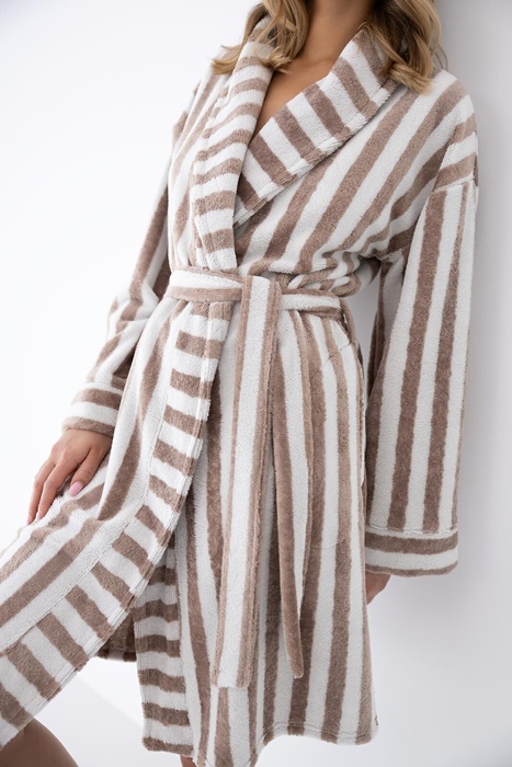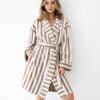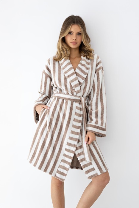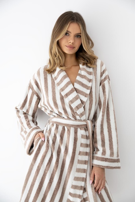 Szlafrok damski Sensis Leighton w kolorze kremowo beżowym w pasy.