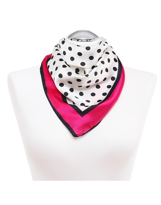 Elegancka Apaszka damska 70x70cm grochy biało różowa: