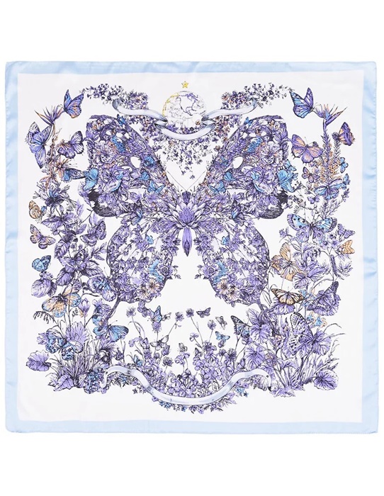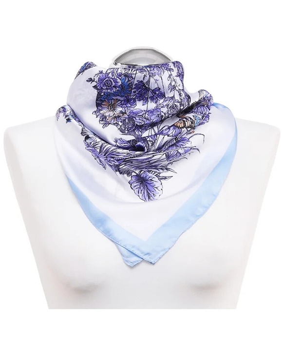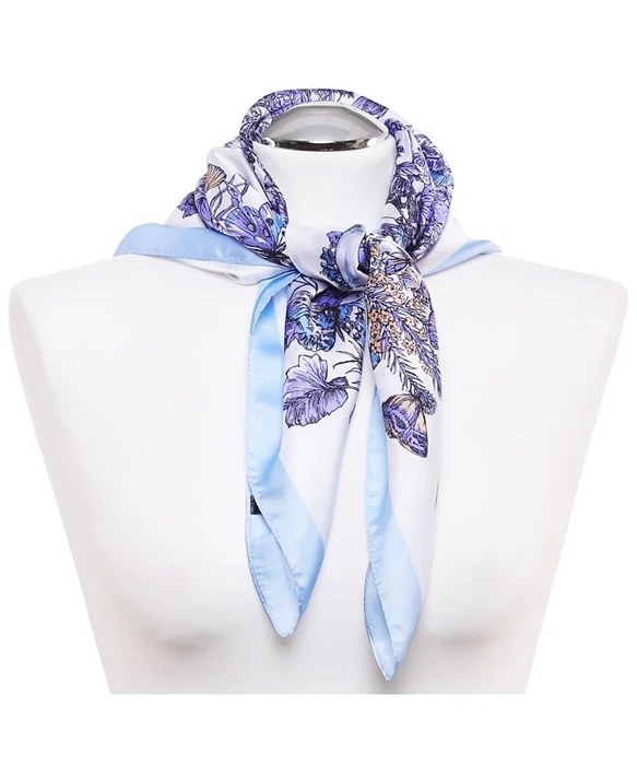 Elegancka Apaszka damska 70x70cm niebieskie kwiaty: