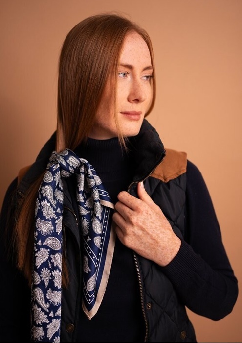 Elegancka apaszka damska Satynowa wzór paisley granatowa