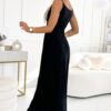 Elegancka długa Sukienka Maxi – długa suknia wieczorowa z rozcięciem do połowy uda. Posiada elegancki dekolt na zakładkę, dopasowana talia i biodra. Fason sukienki pięknie podkreślający figurę. Sukienka długa do ziemi idealna na wieczorne wyjścia, bale, Święta, komunię, śluby i inne eleganckie przyjęcia.