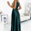 Elegancka długa Sukienka satynowa na ramiączkach zielona: