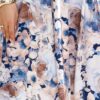 Elegancka Sukienka Matilde o długości midi – lekko za kolano, błękitna w kwiaty. Posiada elegancki dekolt na zakładkę i krótkie rękawki. Fason sukienki z podkreśloną talią. Sukienka midi idealna na każdą okazję.