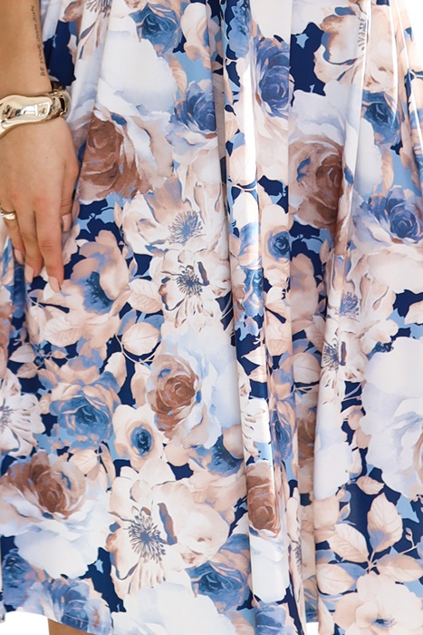 Elegancka krótka sukienka Matylda midi błękitna w kwiaty: