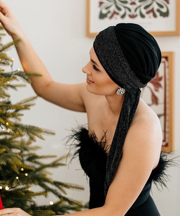 Elegancki czarny Turban z elegancką szarfą do wiązania