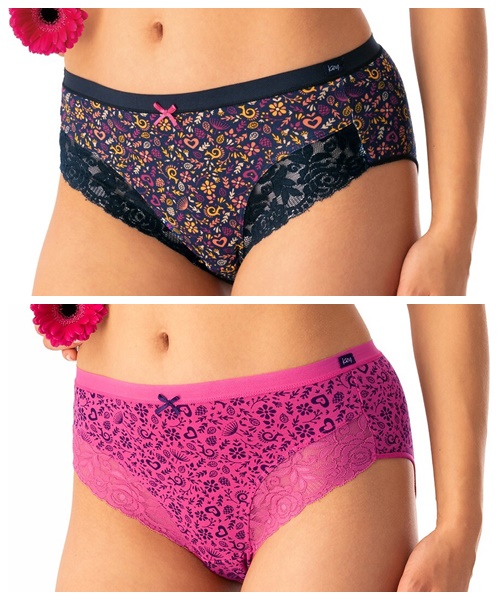 Figi damskie Key majtki pakiet 2 szt.bawełniane fuksja granat: