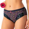Majtki damskie typu figi, biodra lekko zabudowane, zdobne wykończenia brzegów. Eleganckie Figi damskie pakowane po 2 sztuki. W pasie elastyczna płaska gumka.