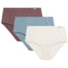 Figi damskie – Zestaw 3 sztuk bawełnianych majtek damskich w kolorach: ecru, różany, niebieski.