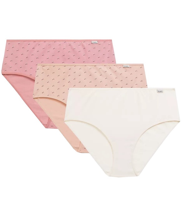 Figi damskie – Zestaw 3 sztuk bawełnianych majtek damskich w kolorach: ecru i różowym.