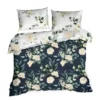Pościel Eurofirany z satyny bawełnianej – granatowo biała pościel w żółte róże: