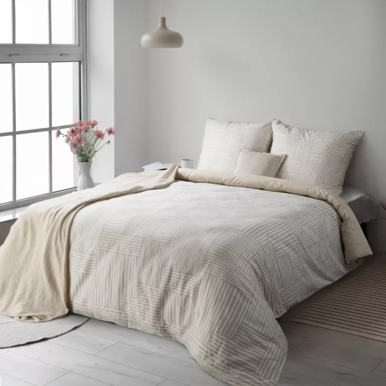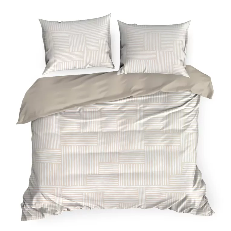 Jasno beżowa pościel w paseczki – elegancka satynowa pościel bawełniana: