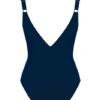 Kostium kąpielowy damski jednoczęściowy BEZ fiszbin granatowo turkusowy. Wygodny i stylowy strój kąpielowy damski jednoczęściowy idealny i na basen i na plażę. Miseczki są usztywnione, ale bez fiszbin, gwarantują więc komfort noszenia i wygodę. Kostium kąpielowy na ramiączkach. Szerokie ramiączka z regulacją. Tył kostiumu jednolity.