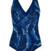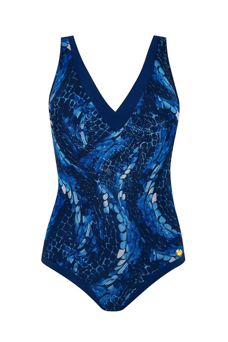 Kostium kąpielowy damski jednoczęściowy BEZ fiszbin. Wygodny i stylowy strój kąpielowy damski jednoczęściowy idealny i na basen i na plażę. Miseczki są usztywnione, ale bez fiszbin, gwarantują więc komfort noszenia i wygodę. Kostium kąpielowy na ramiączkach, w efektowny wzór. Szerokie ramiączka z regulacją.