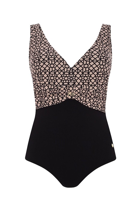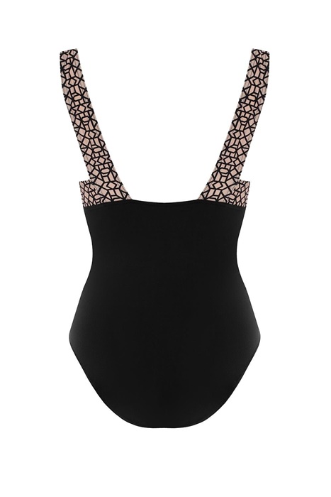 Kostium kąpielowy jednoczęściowy, bez fiszbin, w kolorze czarny + wzór.