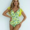 Jednoczęściowy kostium kąpielowy rękawki Cytryny BEZ fiszbin :