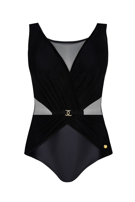 Jednoczęściowy kostium kąpielowy wstawki siateczki czarny: